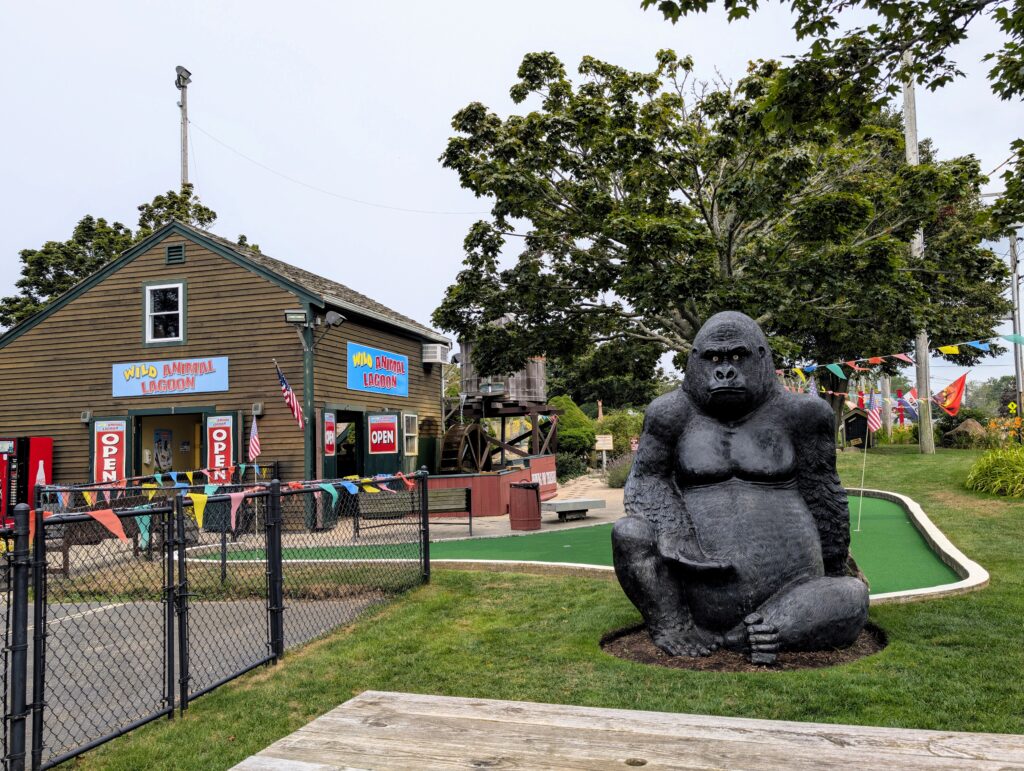 When the sun comes out again, Wild Animal Lagoon is an 18-hole mini golf course populated by gorillas, elephants, and more. The course features a large fountain and a replica of a small plane that appears to have crashed into a waterfall! Kids of all ages can enjoy the golf and learn fun facts about the animals.