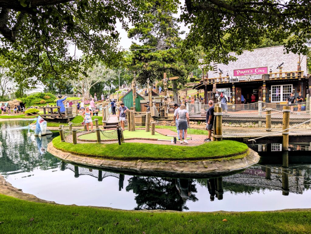 To continue the pirate theme of your day in Yarmouth, Pirate’s Cove Adventure Golf has two 18-hole mini golf courses with a variety of hole designs, two pirate ships, and fascinating details about pirates along the way. The courses are fun and often challenging. Some holes require careful aim and others, such as a hole where your ball drops down to the next level, require good luck!